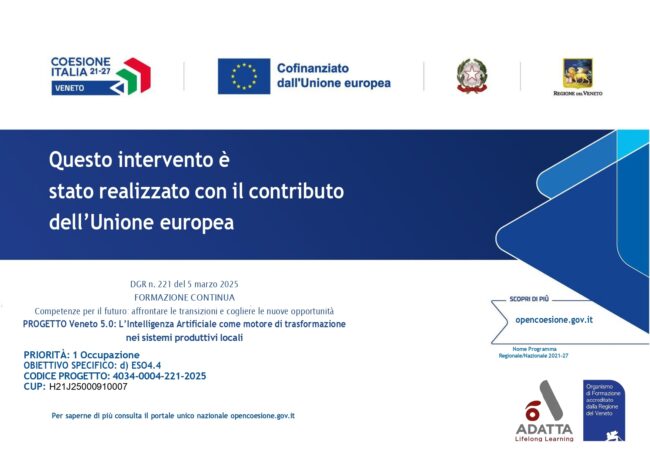 FSE 221 PROGETTO 4 REGIONE VENETO: “Veneto 5.0. L’intelligenza artificiale come motore di trasformazione nei sistemi produttivi locali”