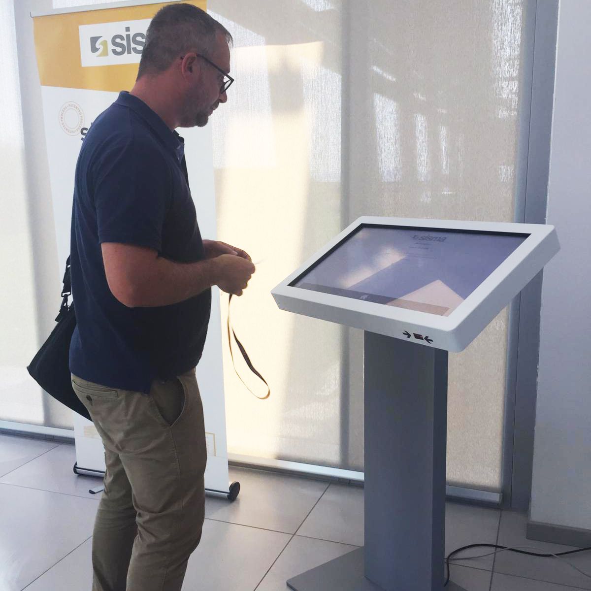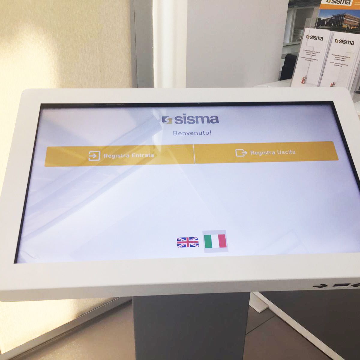 Ogni visitatore può registrare l’entrata e l’uscita dall’azienda inserendo i propri dati attraverso un pratico schermo touch screen; completata la registrazione d’entrata verrà stampata in automatico un badge con i dati del visitatore da utilizzare come cartellino identificativo.
